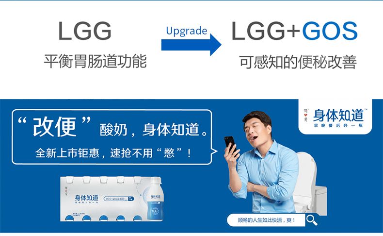 圖片來源:簡愛酸奶官網 不同于以養樂多為代表的乳酸菌飲料,身體知道系列由生牛乳發酵制成,是大陸率先使用明星益生菌LGG菌的酸奶產品,能平衡腸道微環境,改善便秘,恢復腸胃健康。在3年內占據了15%的高端酸奶市場[6]。