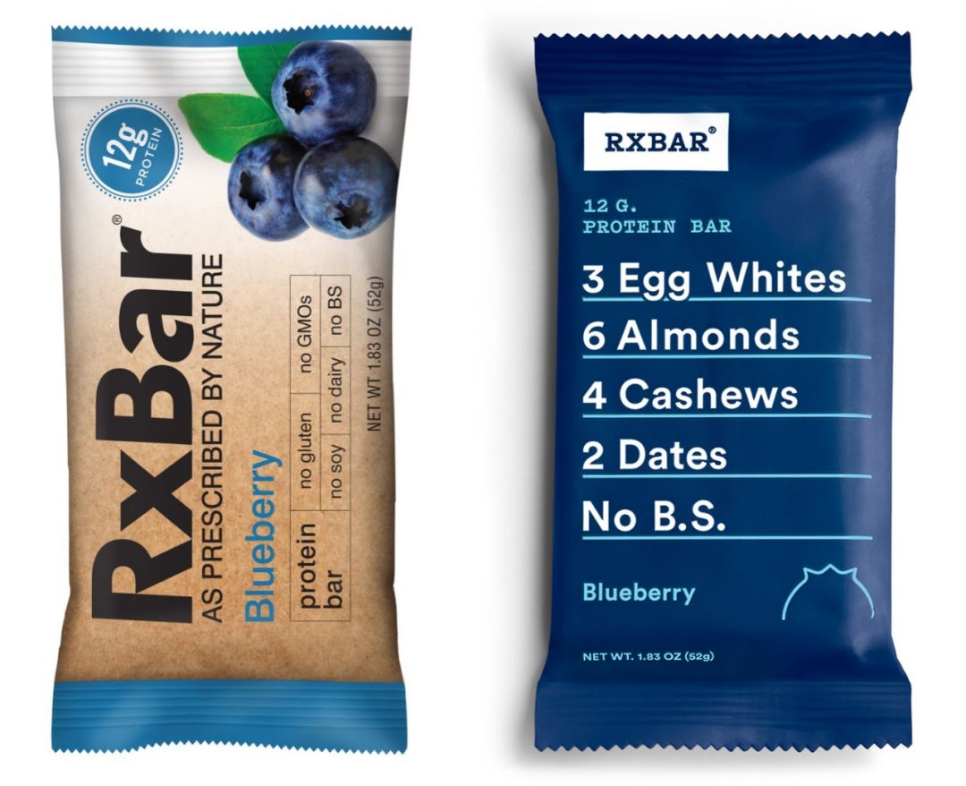 圖片來源:RXBAR官網 原先,RXBAR 的包裝設計中規中矩: 新鮮原料圖片配上巨大的logo 以及產品說明。后來營銷公司在為其重新定位時發現,消費者愿意購買的主要原因是 RXBAR 的天然健康成分,而不是品牌名聲。因此創始人決定著重放大「NO B.S.(無添加,無多余成分)」的品牌承諾,同時將 RXBAR 標志縮小 60%。 比起巨大的logo,巨大的藍莓或者“幫助你成為猛男”這樣的標語,“3 個蛋白+6 個杏仁+4 個腰果+2 個棗”對現在的消費者來說更有吸引力。 新包裝沒有激發食欲的圖片,也沒有產品功效說明,只是簡單地羅列出材料、用量、口味、和保質期。CEO Peter Rahal 解釋道:「當時我們的想法很簡單:只要誠實地告訴顧客,蛋白棒里有什么、沒什么就好了,其余信息一概不用。」