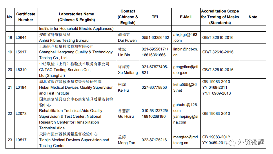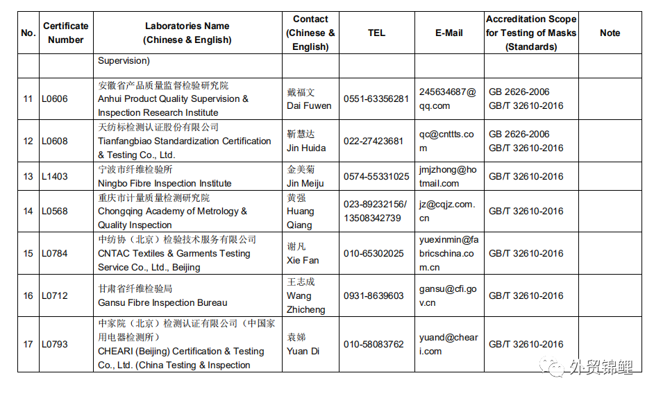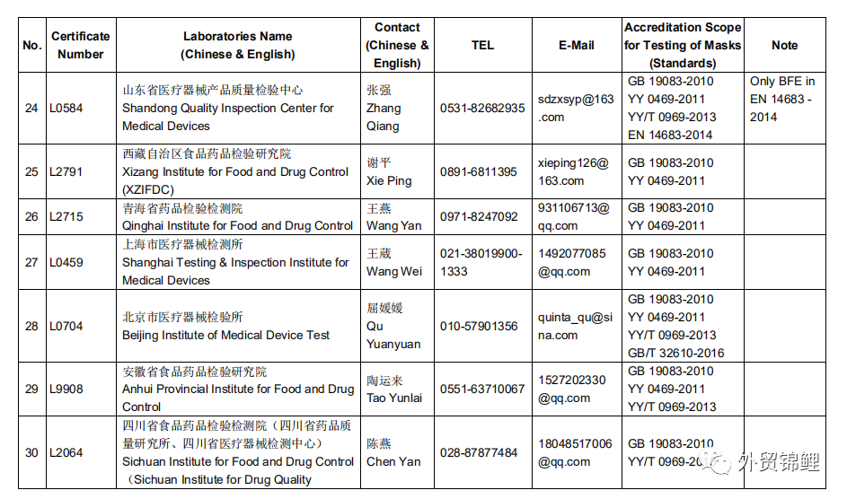 要點(diǎn):檢測(cè)報(bào)告必須是CNAS 指定的46家檢測(cè)機(jī)構(gòu)認(rèn)證的才有效,其他任何機(jī)構(gòu)認(rèn)證的都作無(wú)效處理,航司/船期會(huì)拒絕裝載貨物。如果有近期出口罩的伙伴務(wù)必要核實(shí)自己的檢測(cè)報(bào)告是否有效,以下為官方認(rèn)可的檢測(cè)機(jī)構(gòu),如需完整表單找小編索取。