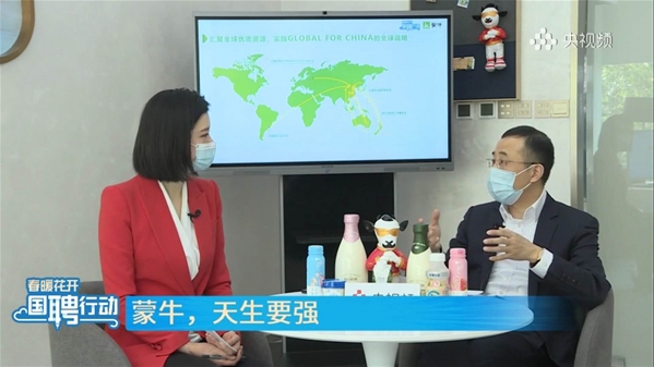 統籌推進疫情防控和經濟社會發展,必須把穩就業放在首位。作為行業領軍企業和乳業履行社會責任的旗手,蒙牛將穩就業作為一項集團級重要工作來抓。一方面積極推進復工返崗,并通過采購、自建產線等方式為全國員工提供充足的防護裝備,并為疫情嚴重地區和特殊崗位的員工提供補貼;一方面蒙牛拿出1000個左右的崗位,為包括迎接畢業生在內全社會乳業人才提供就業機會。 近期,中央廣播電視總臺和國資委、人社部共同發起了“抗疫穩崗擴就業、國資央企在行動”大型網絡招聘活動——“國聘行動”,蒙牛積極參與其中并于4月13日以網絡直播的形式舉行了“云宣講會”。盧敏放亮相直播間,為畢業生、求職者們講述蒙牛的企業文化和愿景,并邀請有志青年投身振興民族乳業的偉大事業。
