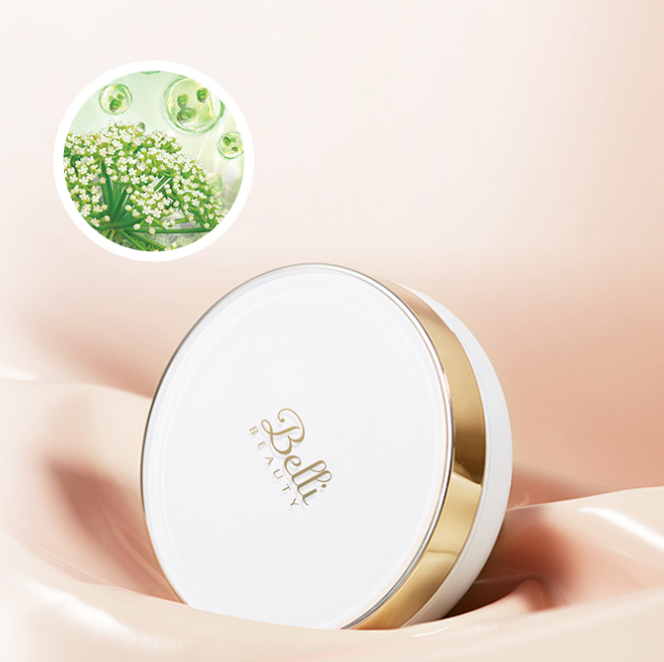 保濕不浮粉,養膚級氣墊 Belli凝時幻顏氣墊粉底霜蘊含法國珍稀保養成分——海茴香,并加入葡萄籽油、積雪草提取物,母菊花提取物等成分,由內而外養護肌膚。