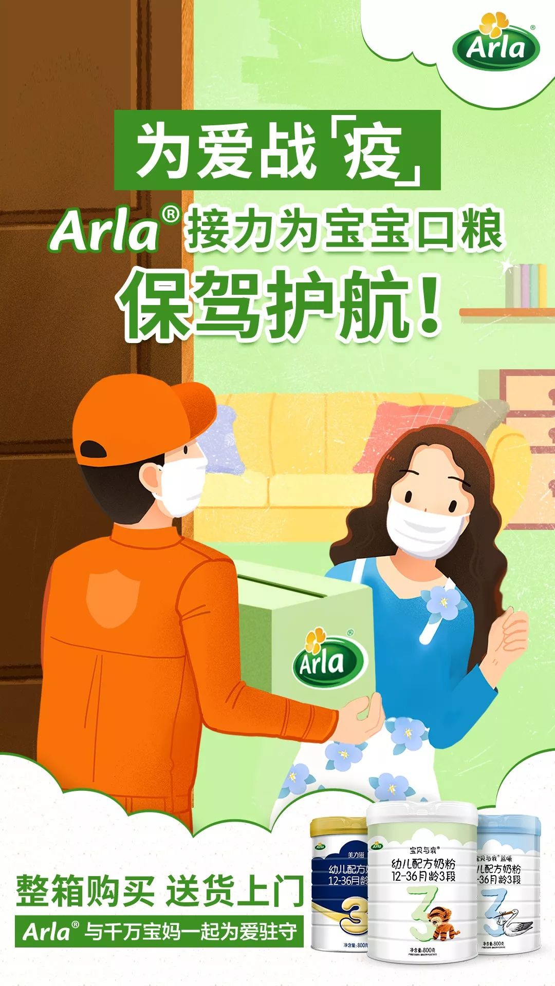 據悉,該公司通過聯合電商渠道和線下母嬰店等渠道,從即日起至3月31日,消費者購買整箱產品可享受送貨上門服務,覆蓋該公司旗下全線產品,包括Arla寶貝與我、藍曦、美力滋。在配送過程中,也會要求送貨人員全程佩戴口罩,最大限度減少接觸降低風險。 |