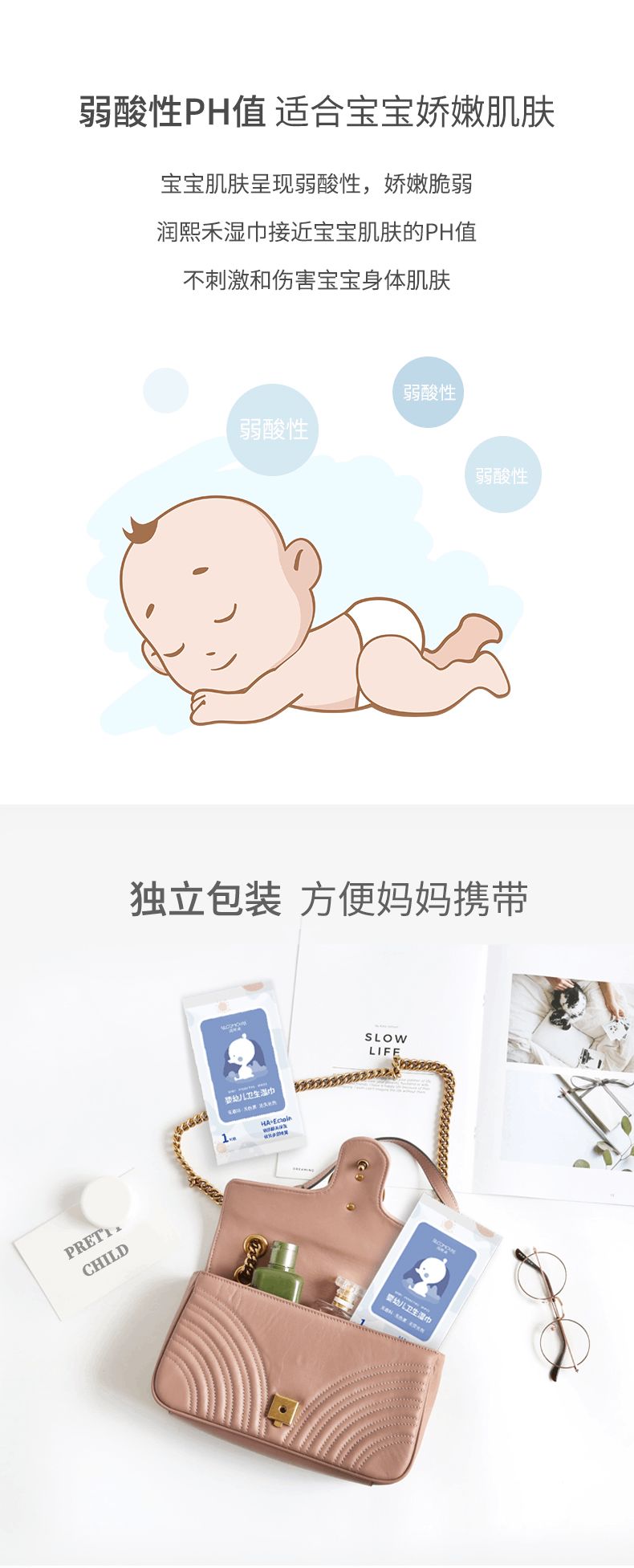| 用華熙生物潤熙禾嬰幼兒專用濕巾擦除寶寶的不安 |