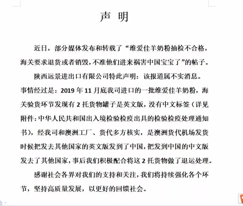 “這批誤發(fā)到中國(guó)的英文版維愛(ài)佳羊奶粉,海關(guān)做了退運(yùn)處理”,該負(fù)責(zé)人如此表示。 虛驚一場(chǎng)! |