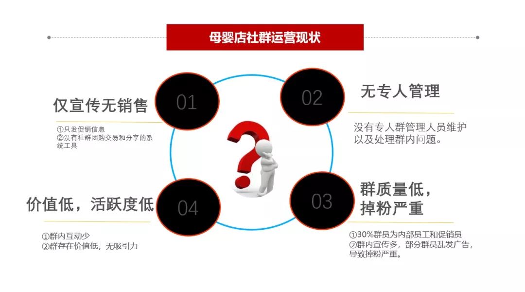 甚至可以做一些定制化的服務,例如:生日會,六月寶寶的群;只做組織者,費用AA,可贊助蛋糕之類的活動。 社群需要話題,具備話題性的社、群才會讓群員有參與感,自主發朋友圈引流,打造:以曬朋友圈為榮的驅動性,日常需要有話題引導,熱門的話題更新;例如:熊孩子麻麻吐槽群,婆媳關系討論群。劃重點!社群炒作玩得好,門店銷售少不了。