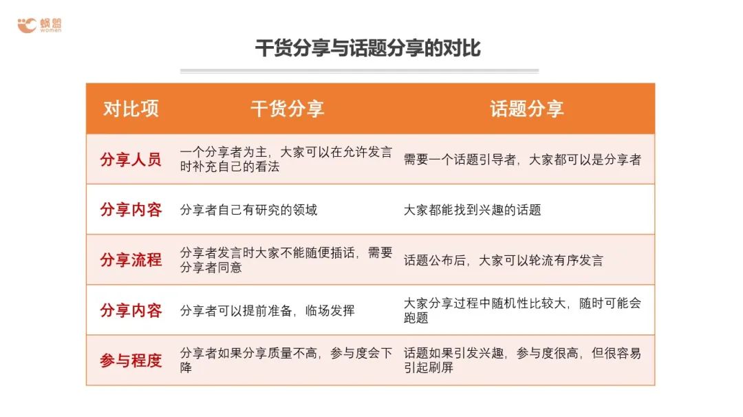 以上說的是話題分享,干貨分享則不同,希望門店能利用身邊的人脈資源或者品牌方資源,以及蝸盟給寶媽們帶來實打實的嬰幼兒養育課題。 干貨分享頻率無需太高,一周一次或兩周一次都可,培養客戶習慣。