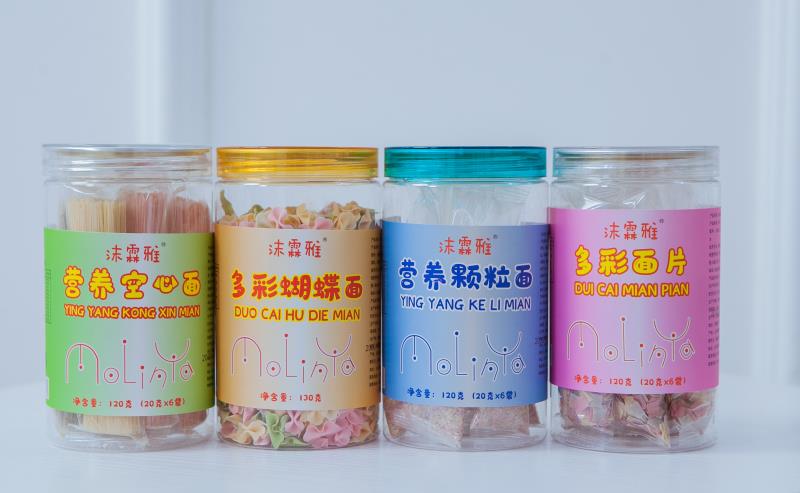 沫霖雅營養面條系列有營養顆粒面條,營養空心面條,多彩面片,多彩蝴蝶面四大單品,綠色生產,無添加,寶寶腸胃無負擔;優質小麥,搭配豐富果蔬精華,營養多元化,色彩繽紛,面體柔軟容易咀嚼;快煮易熟,鎖住新鮮營養不流失。