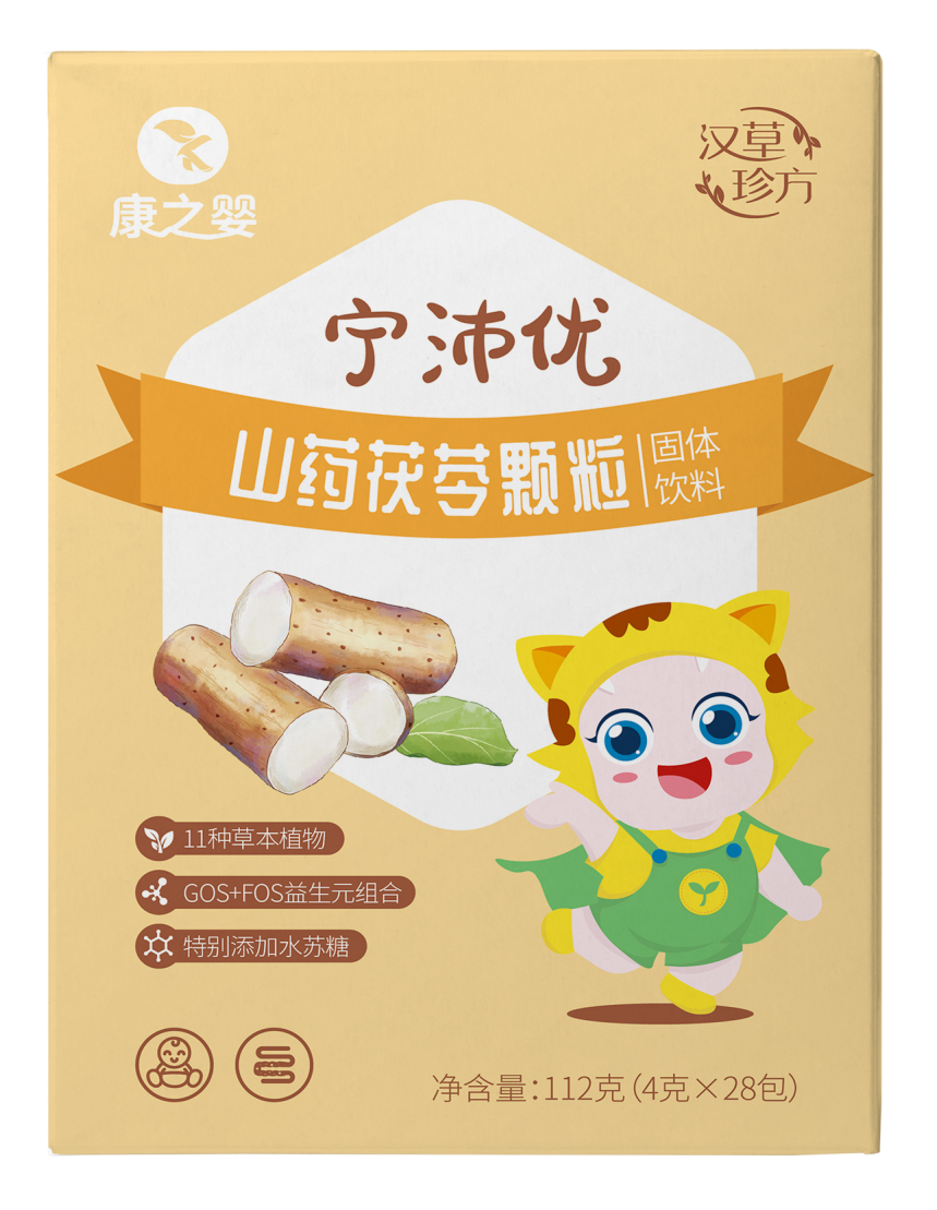 寧沛優(yōu)山藥茯苓顆粒 山藥:補(bǔ)脾養(yǎng)胃、生津益肺、補(bǔ)腎澀精。 茯苓:利水滲濕、健脾寧心。 雞內(nèi)金:健脾消食、澀精止遺、通淋化石。 山楂:消食健胃,行氣散瘀,化濁降脂。 白扁豆:健脾化濕,和中消暑。 麥芽:行氣消食,健脾開胃,回乳消脹。 甘草:補(bǔ)脾益氣,清熱解毒,祛痰止咳,調(diào)和諸藥。