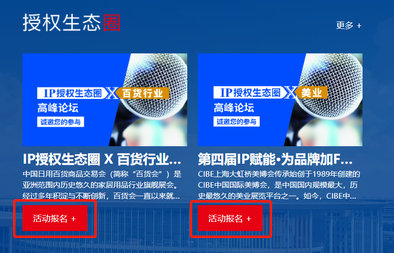 3、大量官方平臺的曝光推廣,線上線下聯動:通過CLE授權展、多場線下授權生態圈,將線上平臺邀約和線下商務會面有效貫通,快速提升IP影響力。