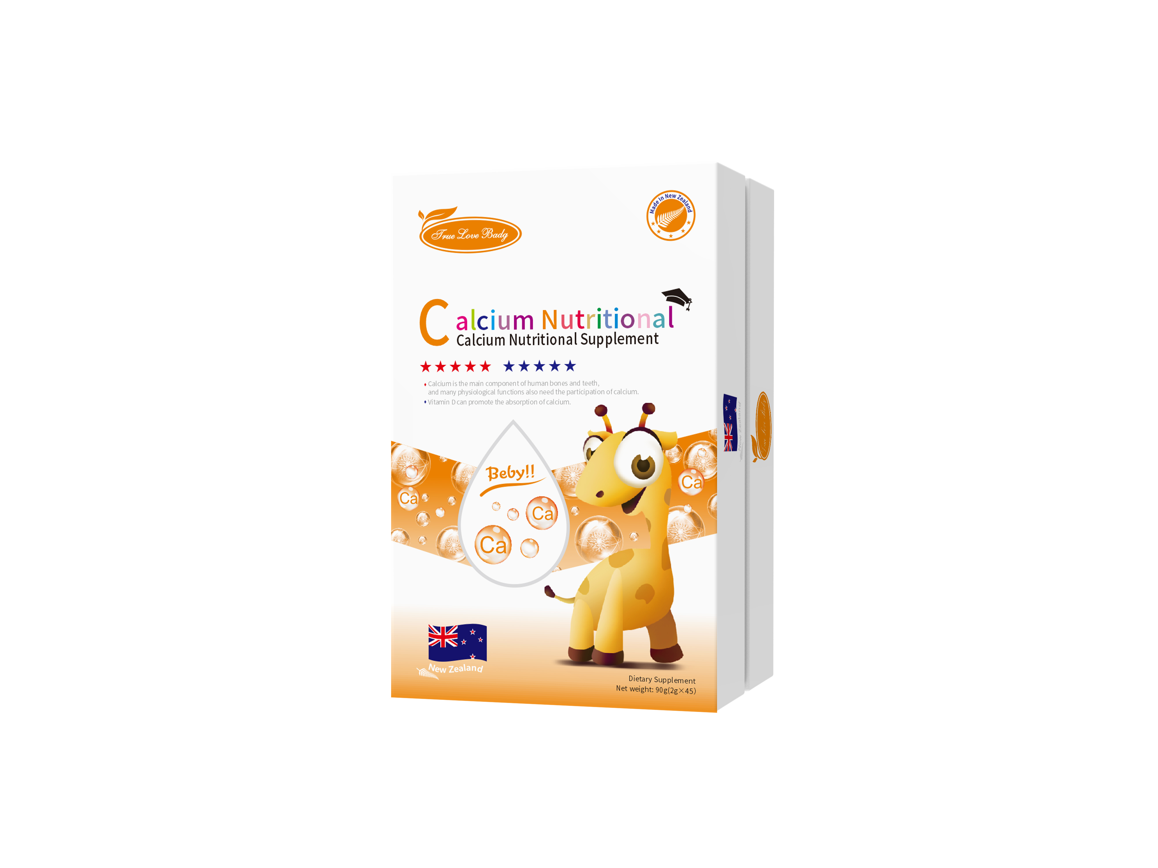 經(jīng)過多年不懈探索,True Love Baby品牌旗下已擁有50余款優(yōu)質(zhì)營養(yǎng)素,品類齊全、品質(zhì)優(yōu)良,產(chǎn)品銷往全球20多個國家和地區(qū),在海外享有極高的聲譽。憑借良好的市場反饋與不俗的消費口碑,True Love Baby已經(jīng)成為新西蘭最受歡迎的暢銷品牌之一,更是新西蘭大商務部對外力薦的品牌。 True Love Baby品牌在中國市場服務和耕耘多年。2002年,True Love Baby就以直譯的方式,同步注冊了中文品牌“真愛寶貝”,率先登陸中國臺灣市場。2003年,真愛寶貝在臺灣建立了與新西蘭總部工廠遙相呼應的臺灣生產(chǎn)基地。2008年,真愛寶貝設(shè)立臺灣研發(fā)分中心,針對中國寶寶做了更詳盡的營養(yǎng)研究,根據(jù)寶寶日常飲食習慣以及營養(yǎng)需求優(yōu)化產(chǎn)品配方。 在經(jīng)過多年深入調(diào)研后,2017年,真愛寶貝正式在中國大陸上市銷售,推出了一系列具有核心競爭力、科學配比、適銷對路的特色產(chǎn)品,引起了國內(nèi)嬰童渠道的廣泛關(guān)注。短短兩年,真愛寶貝就成功與全國100多家城市的嬰童渠道代理商建立了緊密的合作,覆蓋了數(shù)千家終端嬰童店,“優(yōu)質(zhì) 健康 科學”的品牌形象深入人心。 面向未來,真愛寶貝將不斷發(fā)掘塑造品牌核心競爭力,打造消費者心目中認知的頂尖原裝進口嬰童品牌!耙磺袨榱藢氊惤】党砷L”,真愛寶貝始終懷揣初心、恪守品質(zhì),為中國寶寶打 凈含量:60g(2g/袋x30袋) 每100g含:乳鐵蛋白124mg,免疫球蛋白2000mg,N-乙酰神經(jīng)氨酸(燕窩酸)3000mg