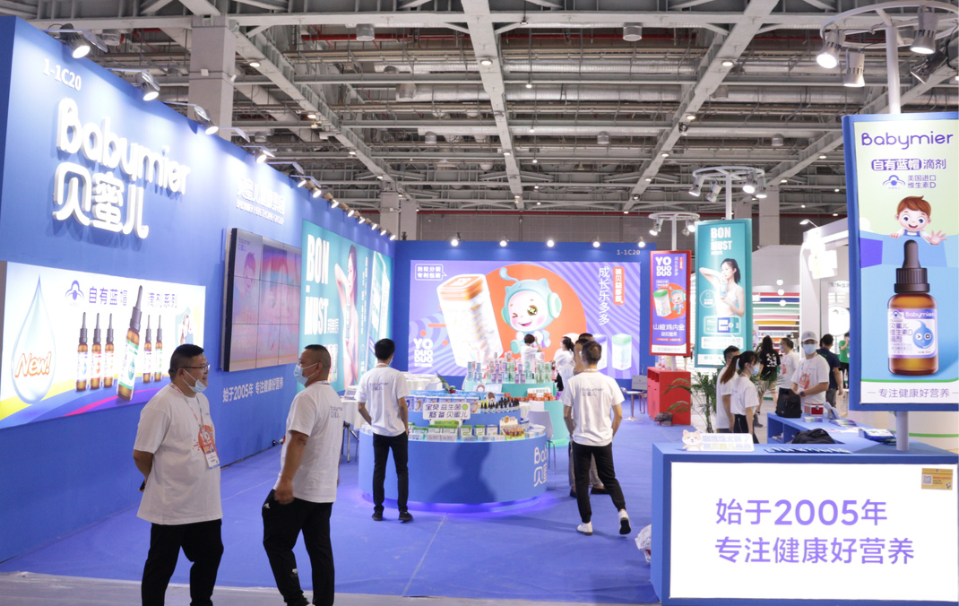 今年,貝蜜兒健康集團除了在現場展示了貝蜜兒益生菌、乳鐵蛋白、DHA、鈣鐵鋅等經典母嬰營養品,還展出了藍帽滴劑新品系列。