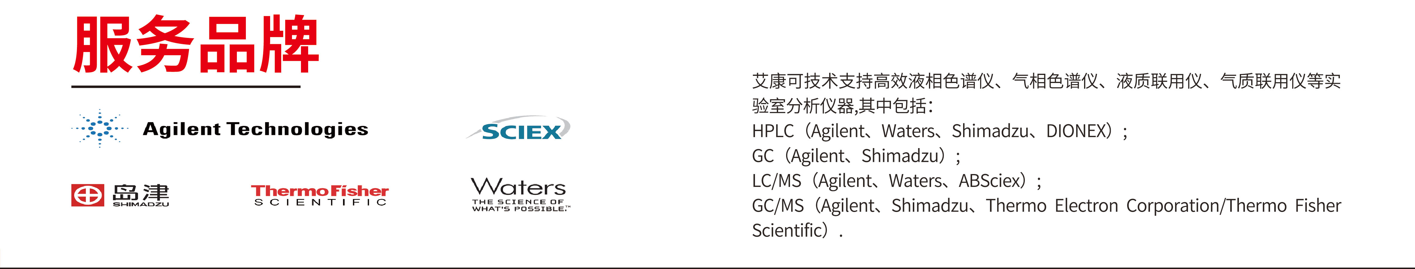 南京艾康科學儀器有限公司服務團隊具有廣闊的及技術服務產品平臺、專業的技術服務人員和顧問團隊。我們可為您提供專業、高效、經濟實惠的分析儀器產品及維修保修服務。 分析儀器產品及服務南京艾康科學儀器有限公司可為您提供Agilent、Waters、ShimadzuThermo、Sciex等品牌儀器品牌的二手液相色譜儀、氣相色譜儀液質聯用儀、氣質聯用儀等分析儀器的產品及單次維修、年保服務儀器認證、搬家等技術服務。