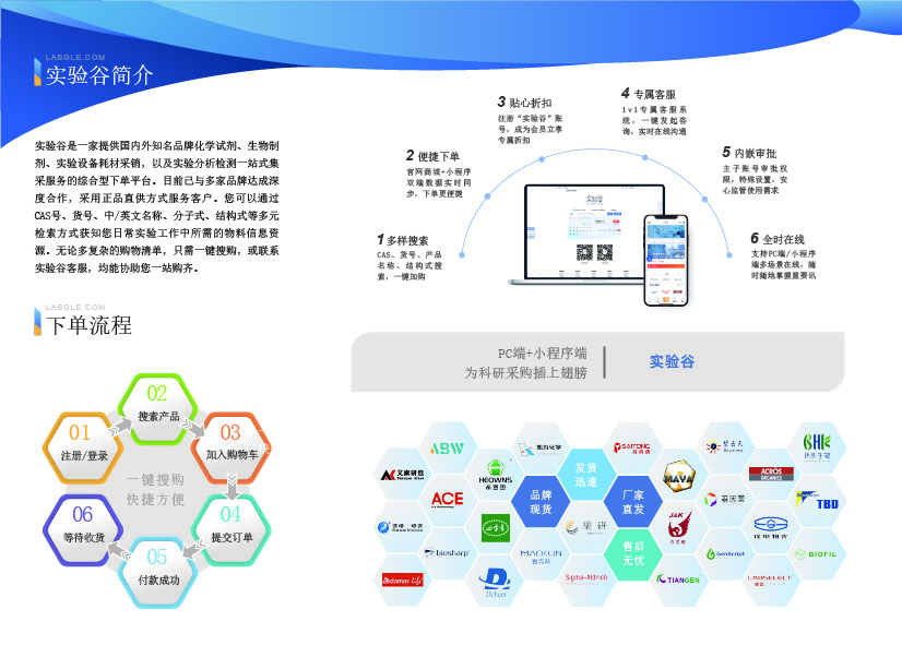 實驗谷是一家提供國內外品化學試劑、生物產品、實驗室設備耗材采銷及實驗分析檢測服務的一站式綜合型平臺。目前已與國內外眾多品達成長期深度合作關系,采用zheng品直供方式服務客戶。