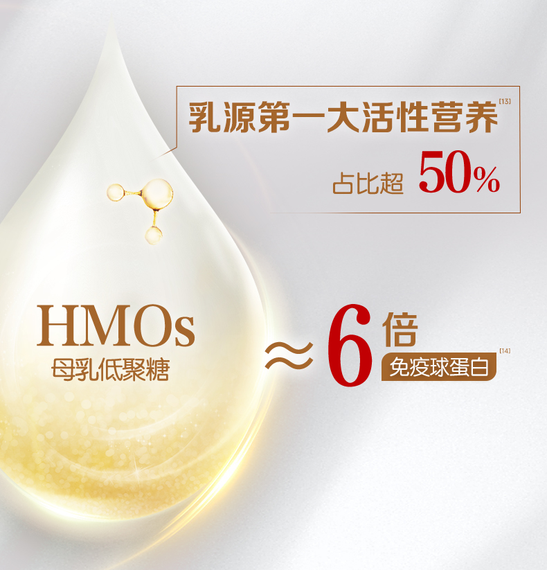 金領冠以伊利70年匠心探索為根基,在母乳低聚糖研究方面,聯合荷蘭瓦赫寧根大學等國際頂尖機構,揭示了中國母乳獨特的HMOs特征,于2022年取得國內第一個HMO健康功效發明專利。通過頂尖工藝,實現HMO活性留存≥92%,寶寶帶來強大保護:1增、促進有益菌繁殖、呵護肚肚微生態;2減、減少有害菌定植,構筑防御屏障;3防、強化自身防護反應,免疫球蛋白slgA倍增,強化寶寶自身防護反應。
