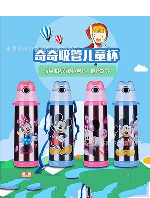 不銹鋼雙層真空保溫杯 兒童吸管保溫杯